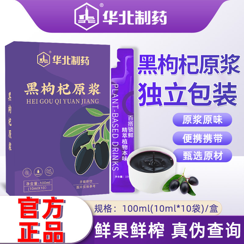 華北製薬黒クコ原パルプ100ml(10ml * 10袋)/箱開袋で黒クコ植物飲料を飲む
