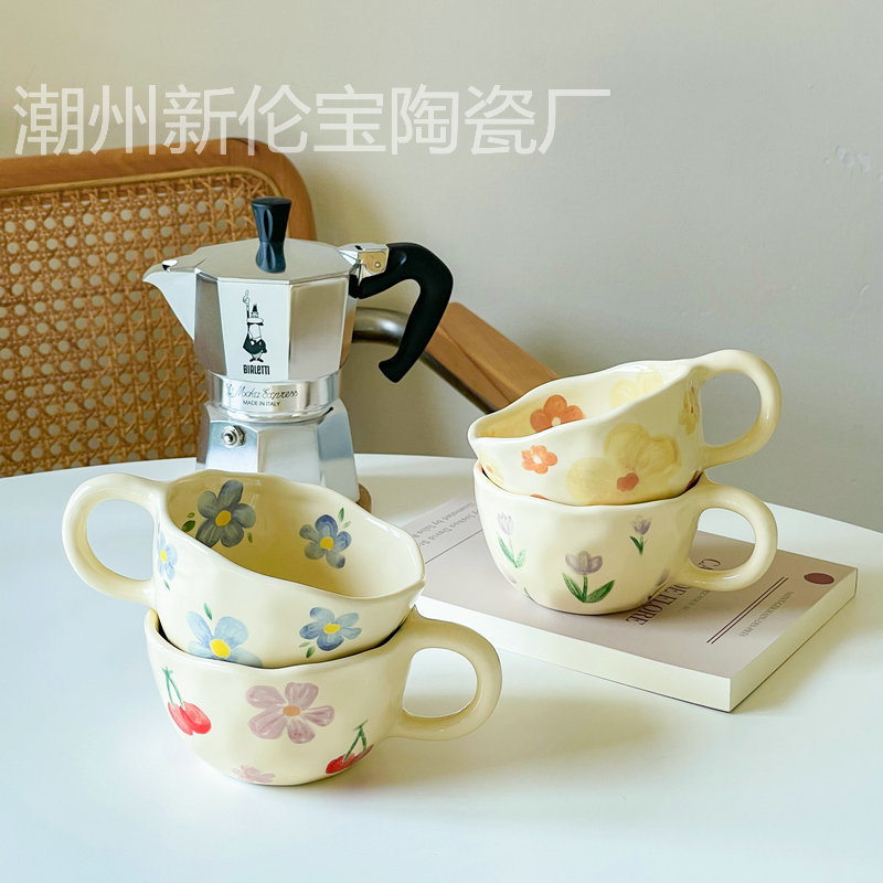 手描き陶磁器カップネットレッド北欧ins風マグカップクリエイティブ陶磁器カップ朝食レトロ牛乳コーヒーカップ