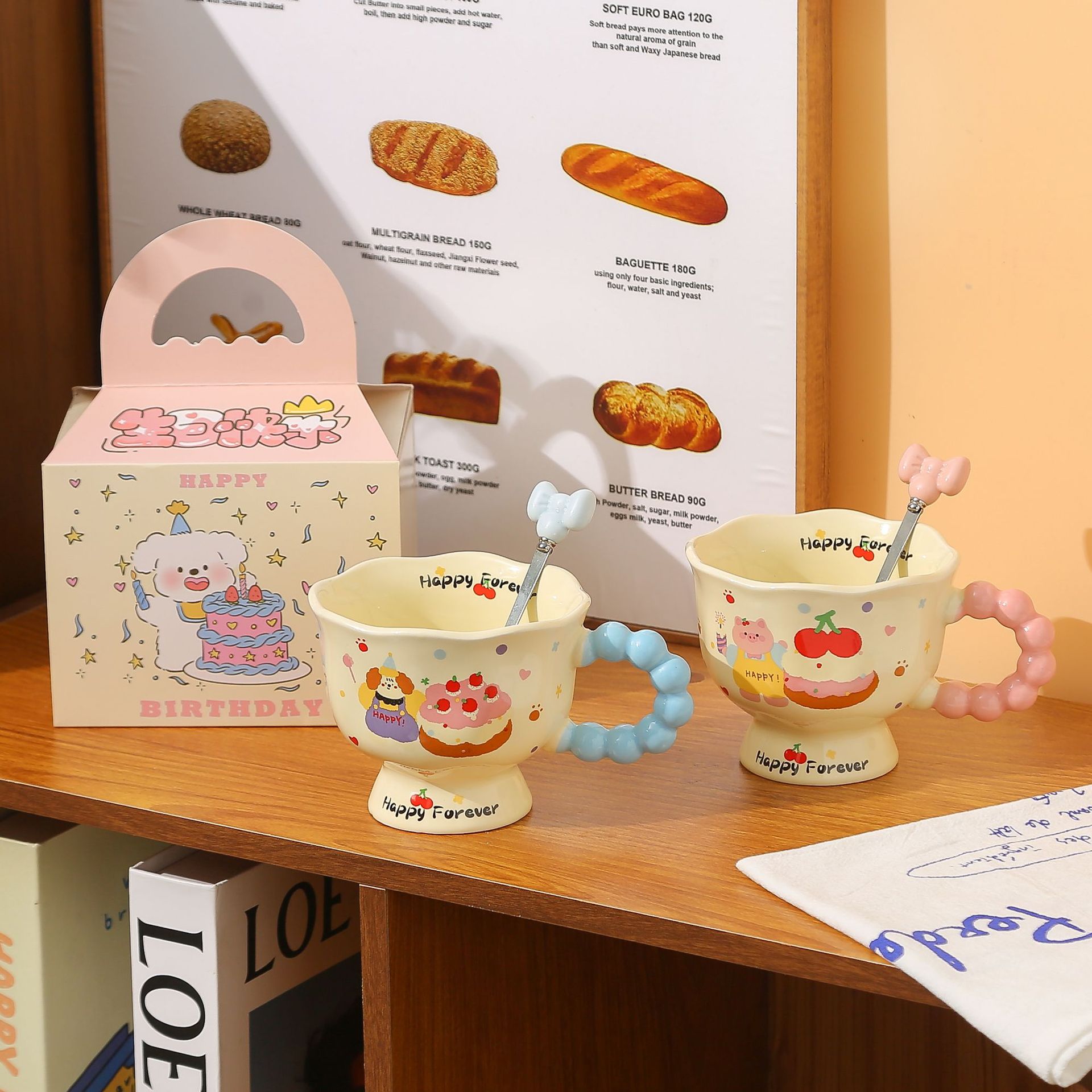Ins風子犬マグカップ高颜値カップ陶磁器カップルカップは女の子に誕生日プレゼントをプレゼントします