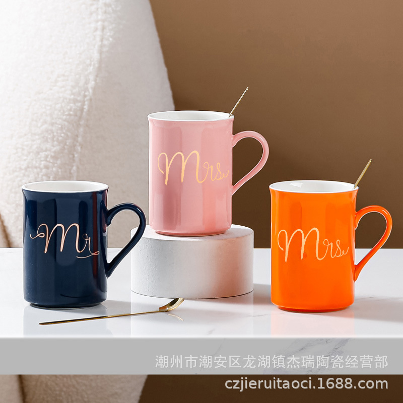 ホット販売アルファベットセラミックマグカップセット蓋付きスプーン飲む水カップカップル家庭用ティーカップ【カップ卸売】