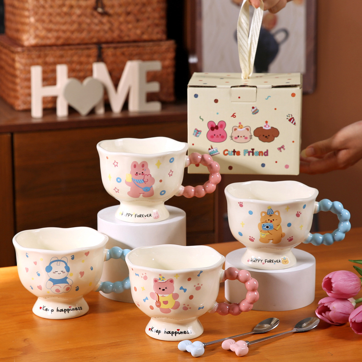 マグカップセット陶磁器カップスプーン付き家庭用コップギフトボックス子供クリエイティブイベントプレゼント結婚お土産