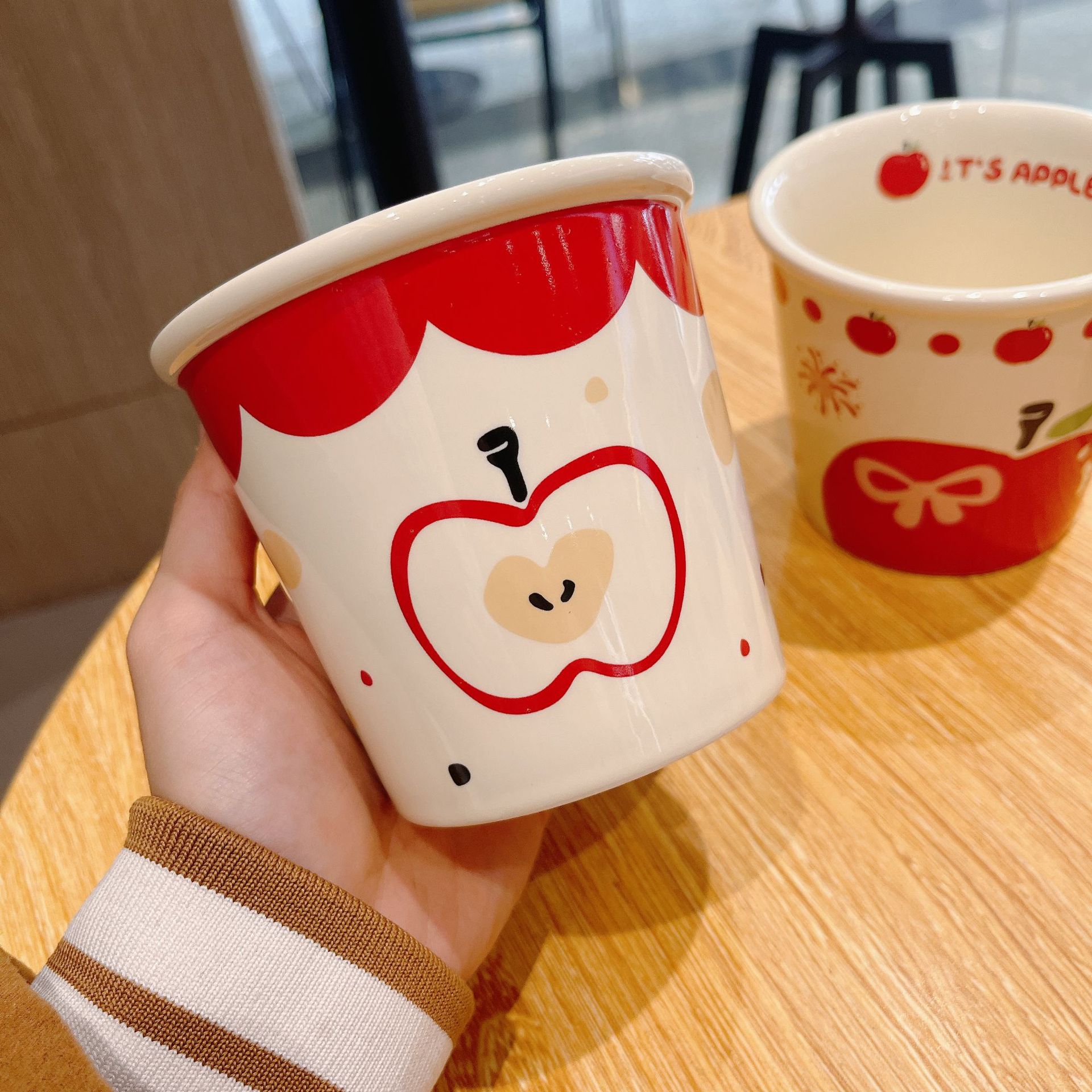 苹果手握杯随手杯陶瓷杯可爱加厚杯子家用办公室冷热饮料喝水礼物