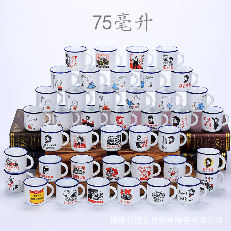 創意陶磁器のお茶の杯のトランペットの75mlのノスタルジックな語録のお茶のかめの工夫のお茶のコップの子供のコップの家庭用のコップ