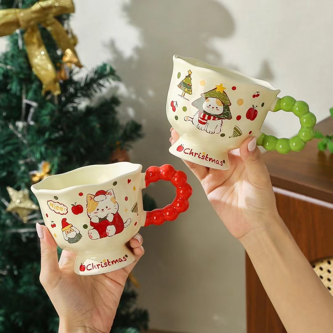 国境を越えた可愛らしいクリスマスギフトマグカップ、クリエイティブで美しいクリスマス猫セラミックカップ、お土産コーヒーカップ