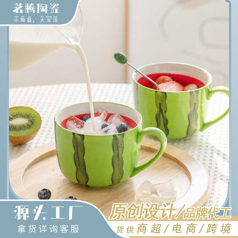 水カップ夏陶磁器カップかわいい手描きマグカップ高颜値果物スイカカップ子供カップル朝食カップ