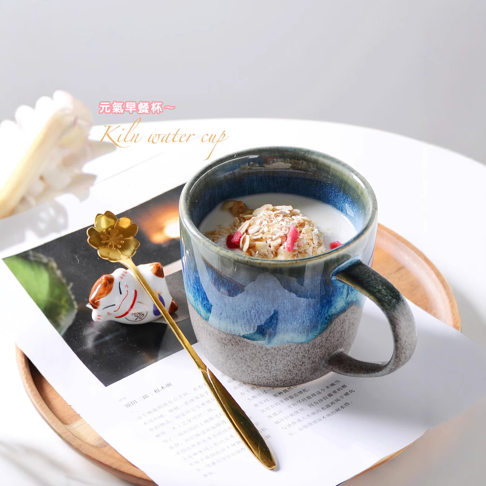 窯変陶磁器マグカップ在宅オフィス水カップ青釉水復古350ミリリットル片耳防熱カップ卸売り