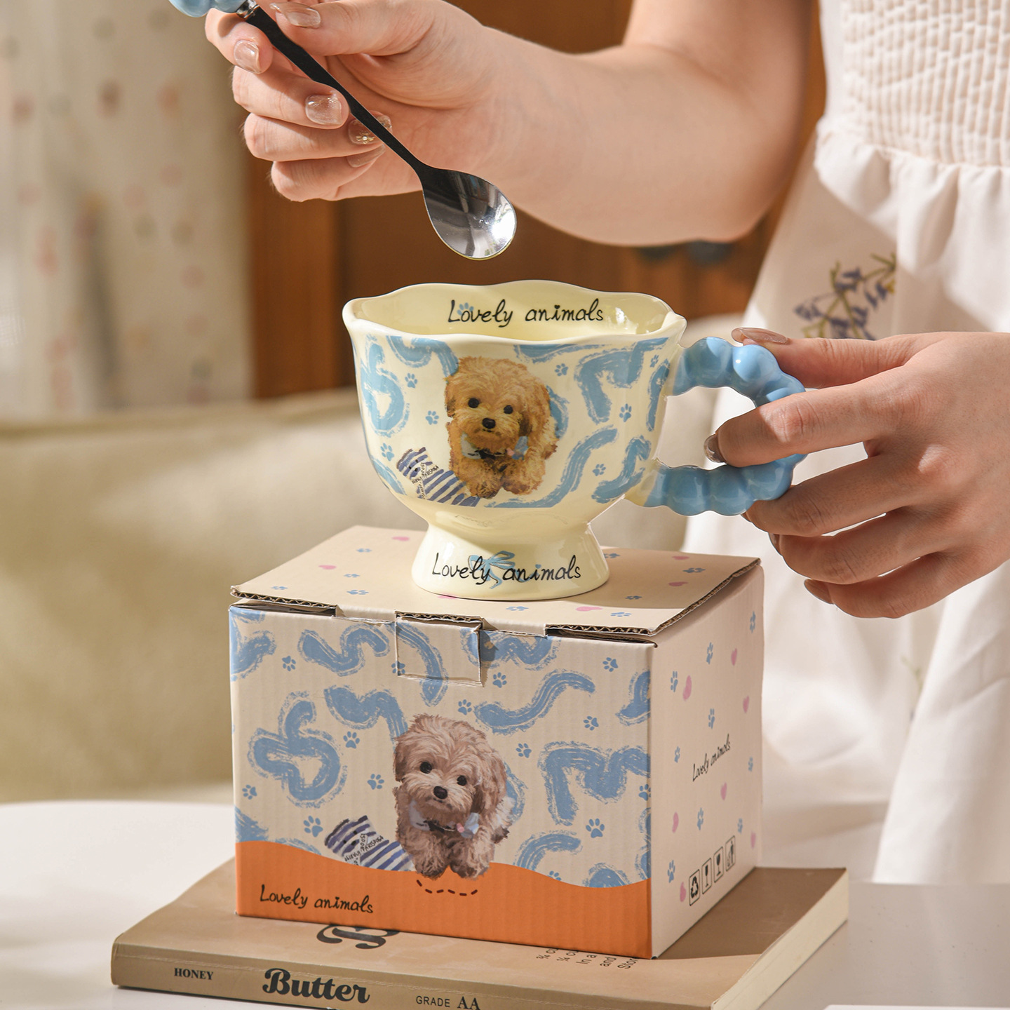 インスタイル漫画かわいい猫と犬マグクリエイティブ背の高いセラミックマグオープニングイベントお土産スプーンギフトボックス付き