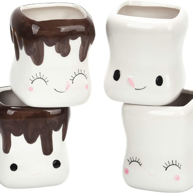 新しい4pcs陶磁器のマシュマロの表情のコーヒーのコップの陶磁器の杯のほほえみのアイデアの陶磁器のかわいい置物の家庭