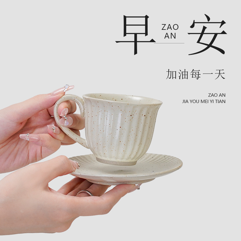 复古粗陶咖啡牛奶杯日式办公室下午茶陶瓷杯马克杯高颜值杯碟套装