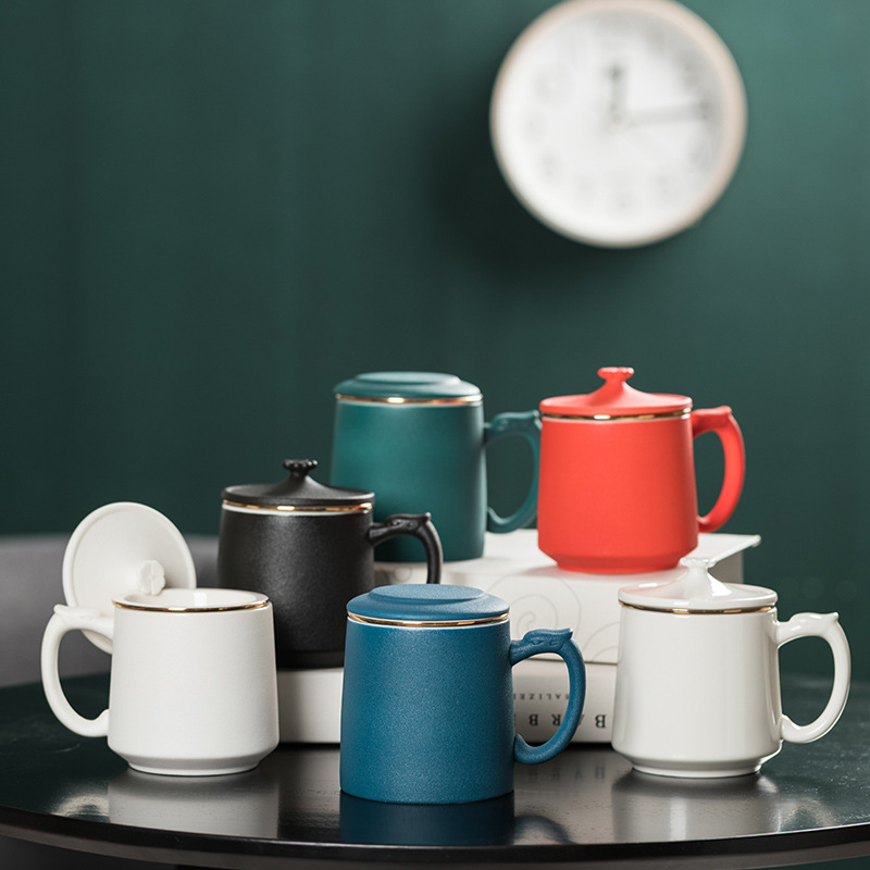 セラミックカップフィルターカップ個人専用オフィスマグカップカバー付きフィルターカップ付きお茶分離カップ