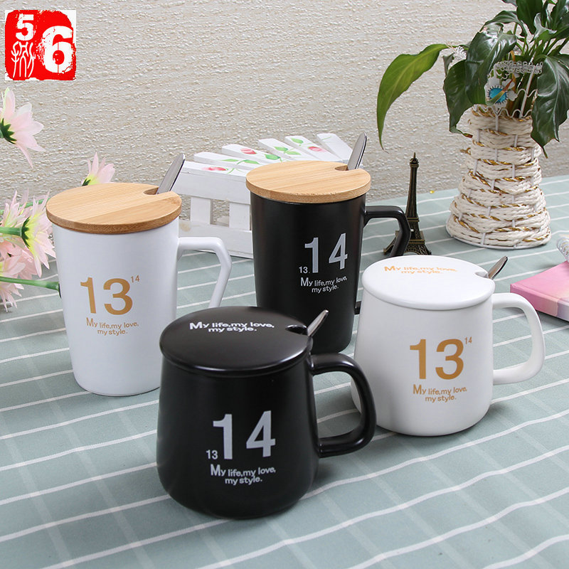 シンプルなマグカップ陶磁器の水を飲むコップの高い顔の値の事務室の男子学生は蓋のスプーンのカップルの家庭用のコーヒーカップを持ちます。