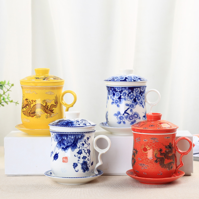 メーカー卸売り創意宮廷青花四枚杯個人杯陶磁器事務杯杯杯杯杯付会議泡杯
