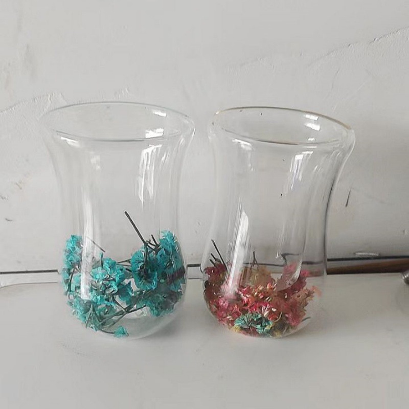ドライフラワーカップ家庭用ハンドルなしミルクカップティーカップ二重ガラスドライフラワーカップコーヒー高ホウ素シリコングラス