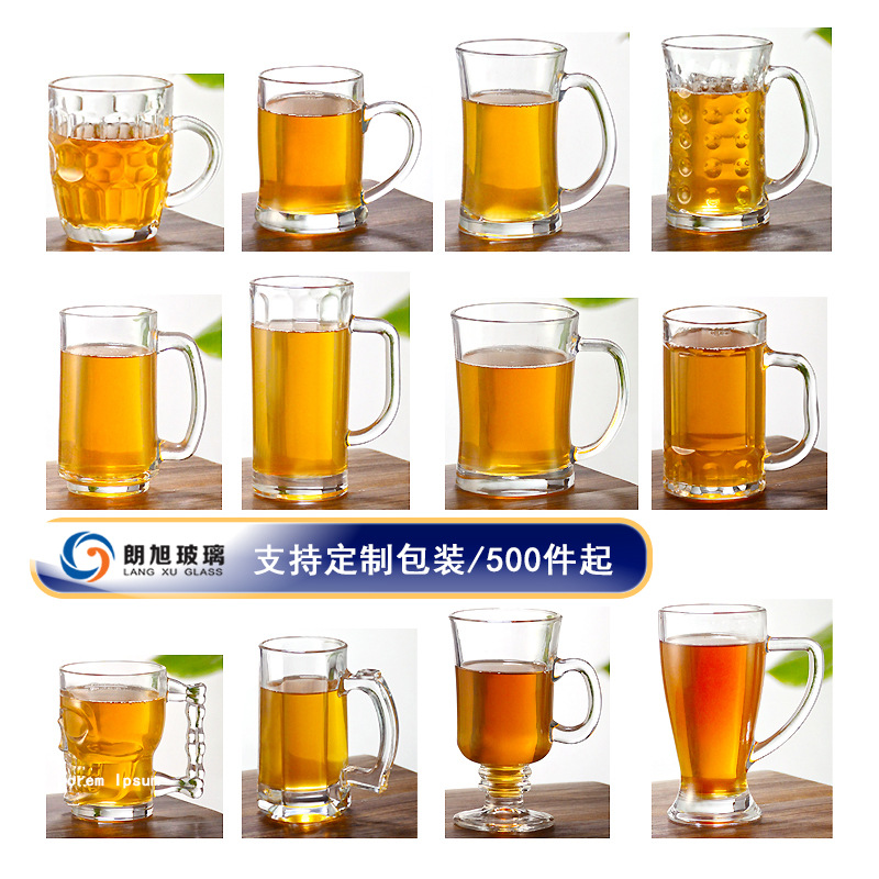 Langxu ハイエンドガラスビールカップ生ビールカップ大小容量厚みのあるハンドル付き耐熱ティーカップガラスカップ