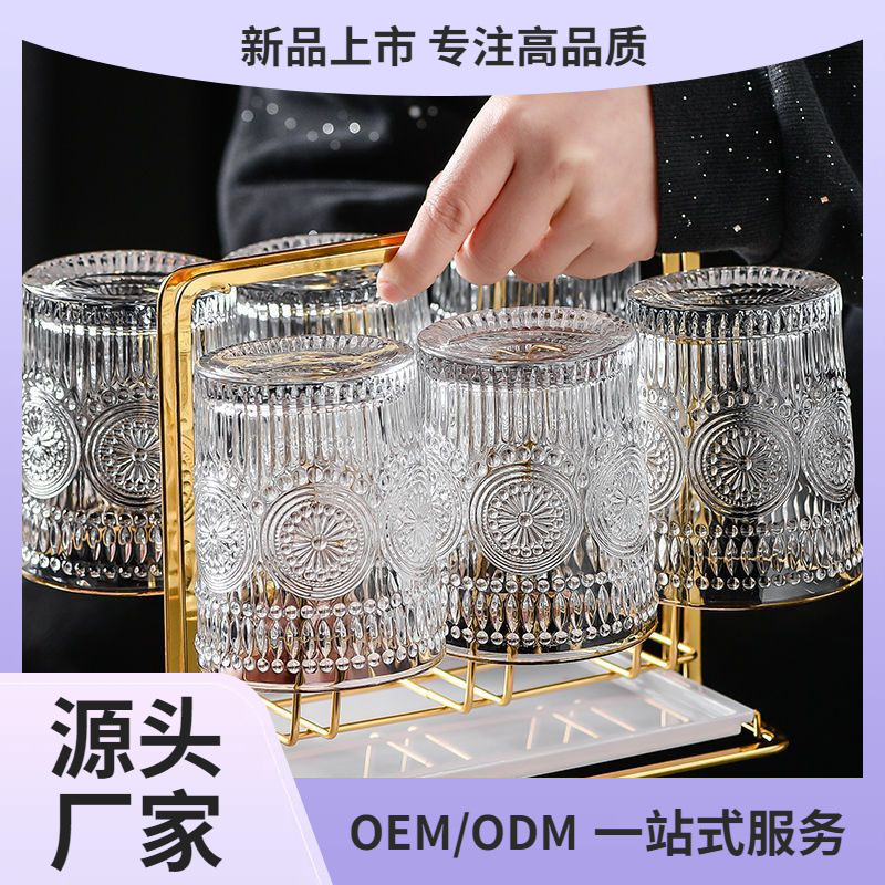 北欧金辺グラス復古太陽花浮き彫りコップisn厚いジュースカップ家庭用グラス朝食カップ
