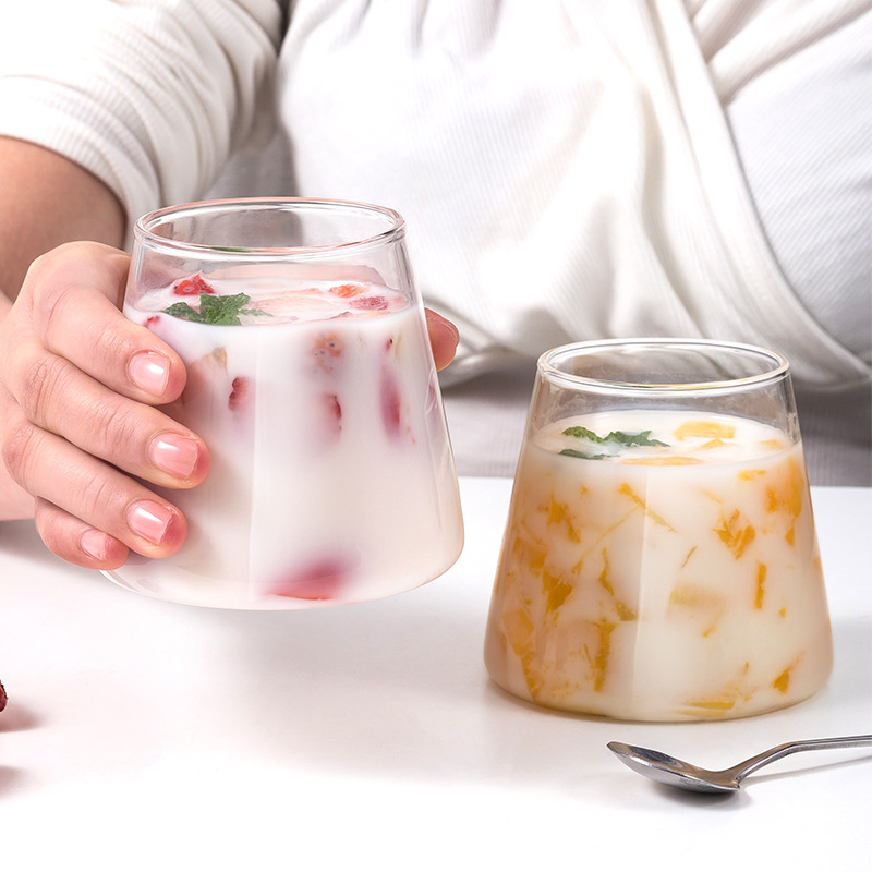 ハンドル付き二重カップ高ホウ素シリコンガラスミルクティー飲料ガラスカップ耐熱防熱ガラスカップ