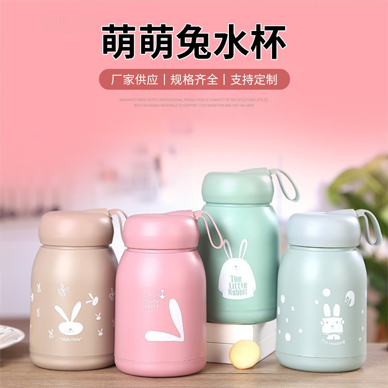 ポータブル耐高温帯ロープ付き二重広告カップかわいい萌えウサギガラスカップオープンイベントプレゼントカップ