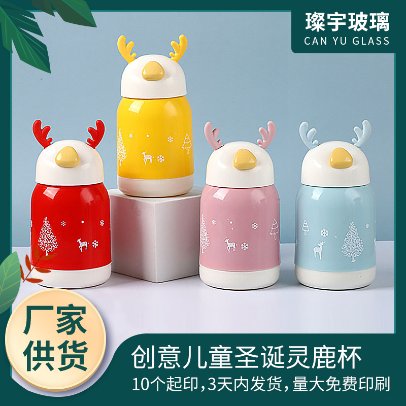 クリエイティブガラス鹿カップかわいいアニメ鹿角カップクリスマス霊鹿カップオープンプレゼント広告カップはロゴを作ることができる