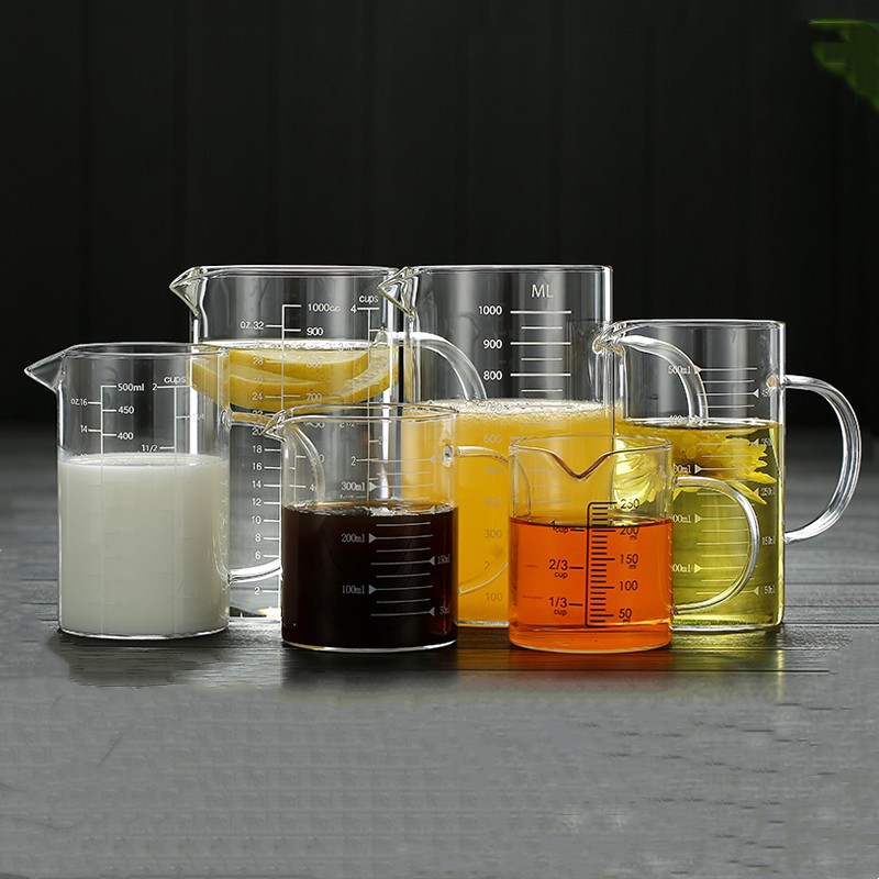 卸売りは高ホウ素シリコンガラス計量カップ透明焙煎牛乳カップ計量カップ多規格ガラス計量カップを供給する