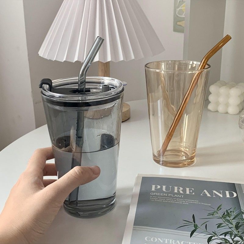 コーヒーカップins風シンプルなガラスストローカップオフィスカップ蓋付き学生携帯グラスカップ