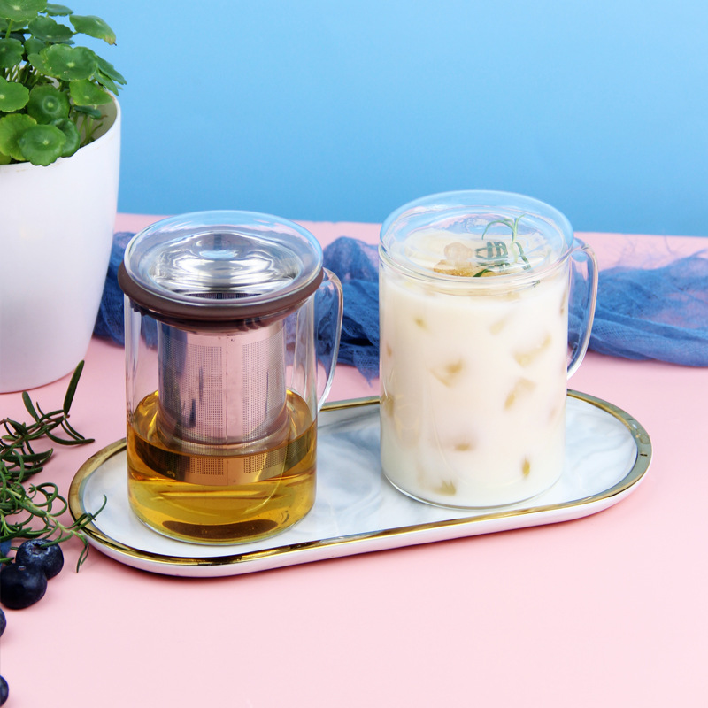 工場カスタマイズされた大容量ガラス高ホウケイ酸ビジネス茶水分離ハンドル付き大容量卸売彫刻