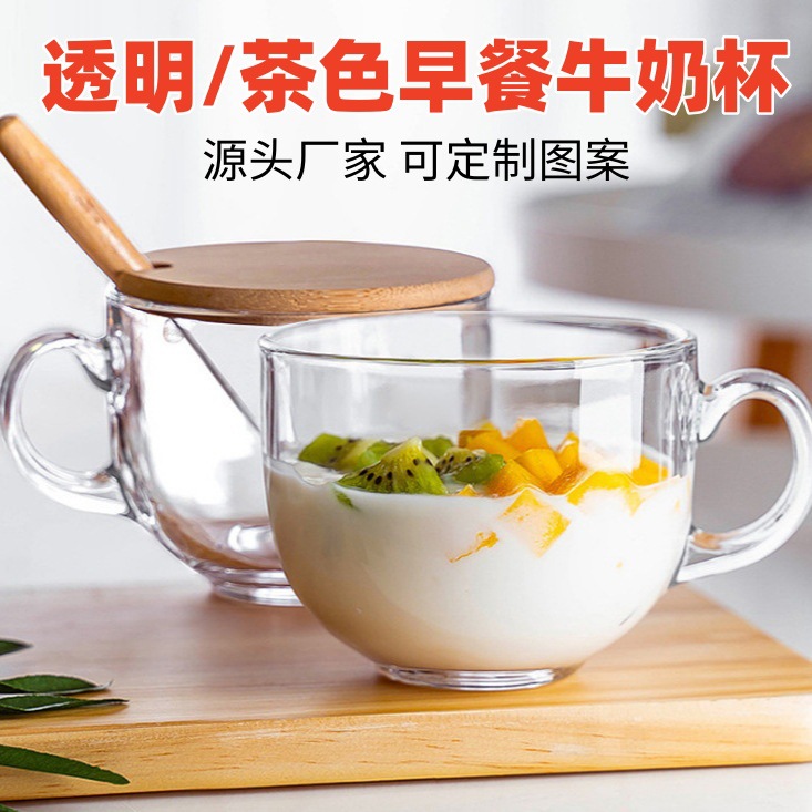 北欧茶色朝食カップ牛乳カップ家庭用大容量ガラスオート麦カップ蓋付きグラスギフトカップ卸売り