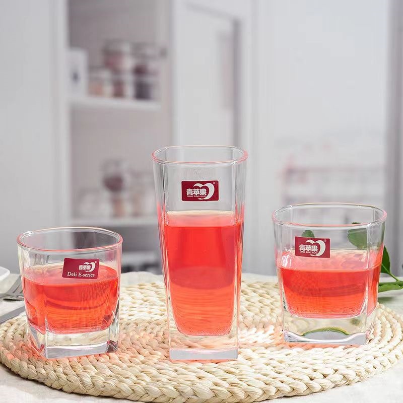 青リンゴ鉛フリーグラスウイスキーカップビールグラス厚い底四方カップ耐熱ガラスカップY5401