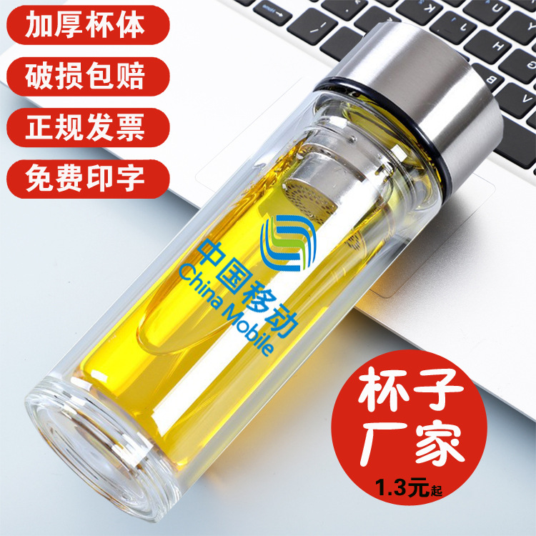 クリエイティブファッション断熱二重ナイズガラス水杯学生カップ祝日プレゼント広告カップ印刷ロゴ