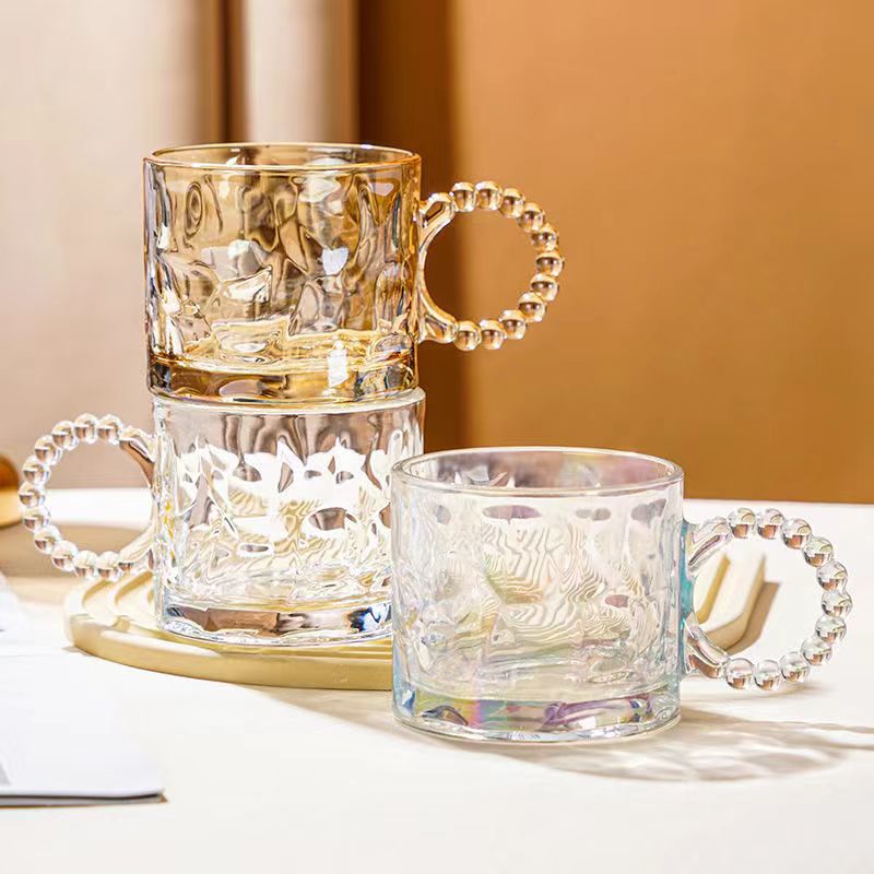クリエイティブパールハンドルカップ大容量ガラスハンマーパターンガラスウォーターカップお土産カップギフト工場卸売