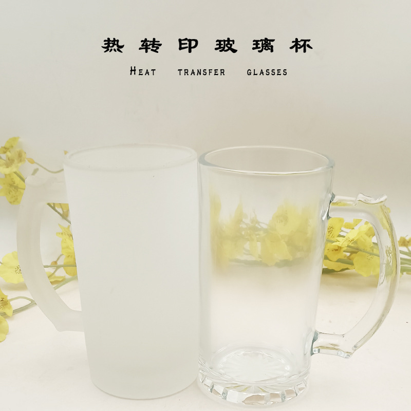 16オンスのガラス製ビールジョッキ、ロゴ印刷、昇華プリント、フロストガラス、熱転写コーティングカップ、ビジネスギフト