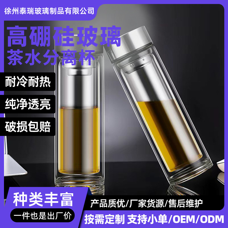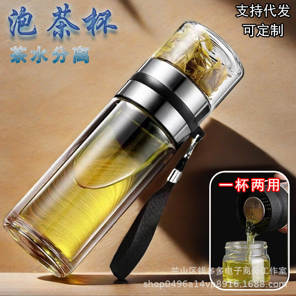 お茶分離カップ泡茶師二重断熱カップ高ホウ素シリコン男性携帯カップビジネス断熱グラス