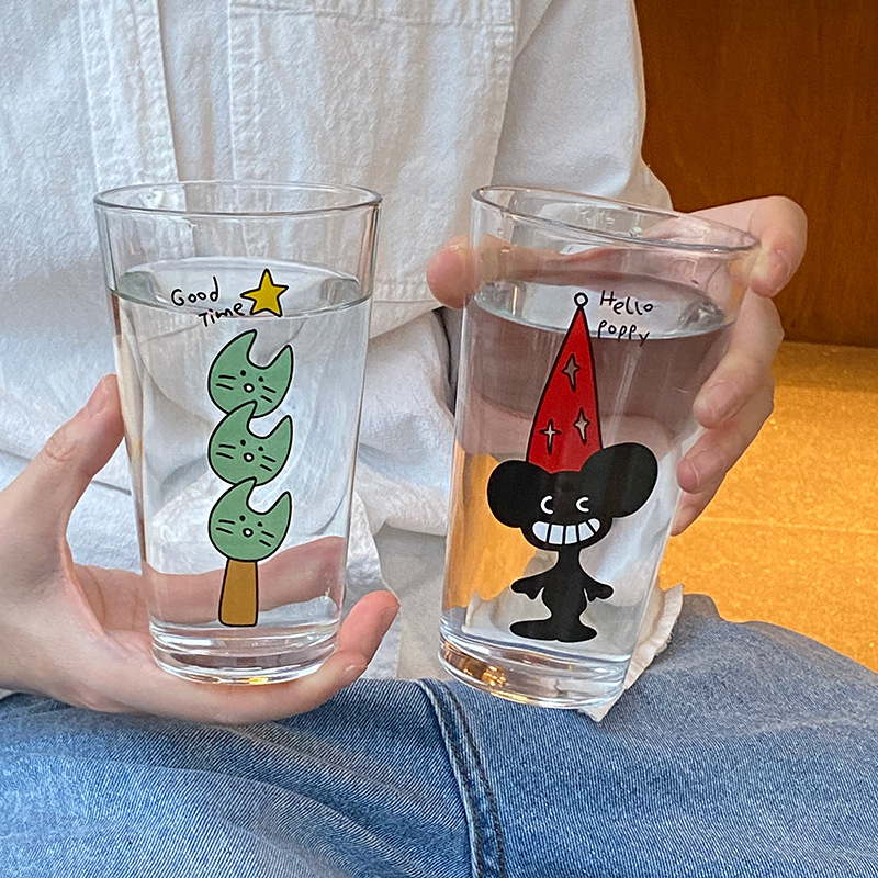 ネット赤コーラカップ高ホウ素シリコンガラスコップシンプルミルクティーカップジュースカップ家庭用朝食カップクリエイティブストローカップ