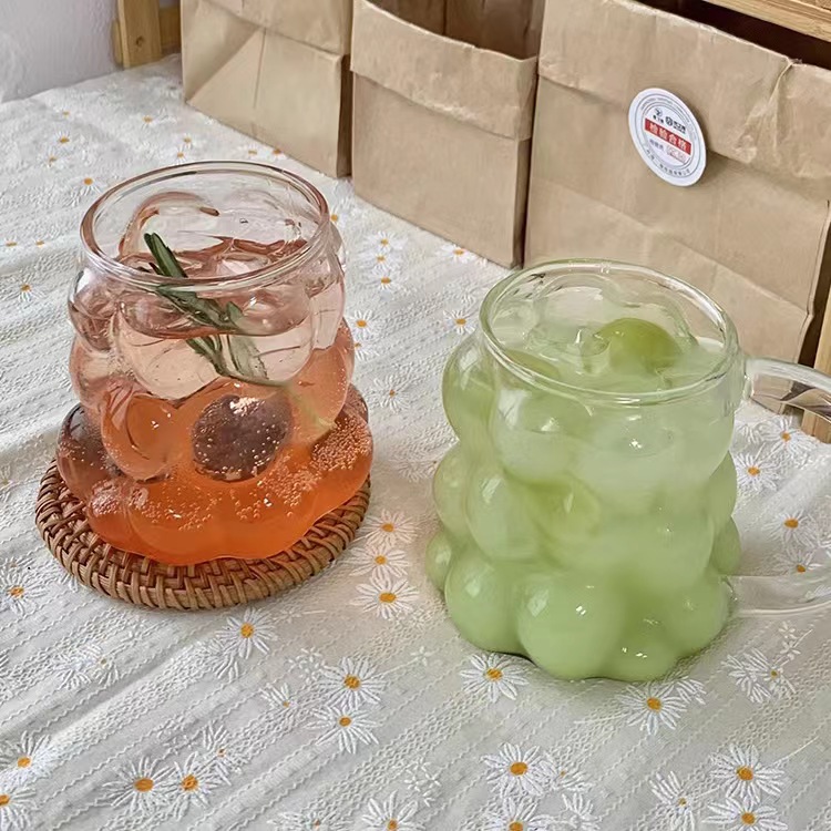 大腹ゴロ杯ネット赤INSグラスシンプル取っ手ミルクティー飲料カップオフィス家庭用リビングルーム茶水