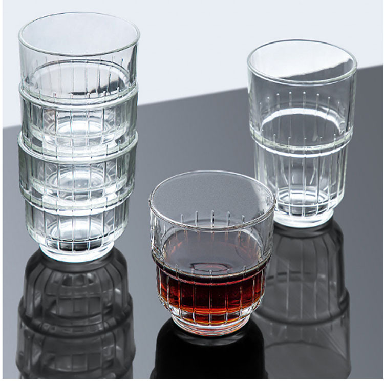 アメリカンアイスコーヒーカップ透明冷ストライプガラスカップレトロ牛乳飲料カップ積み重ね可能ins風