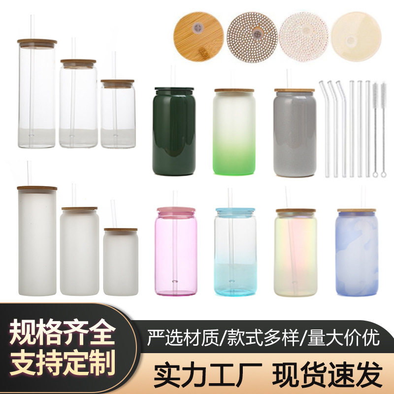 クロスボーダー16オンス熱昇華高ホウ素シリコングラスメイソンカップコーラカップ缶ネオン蛍光色カラー