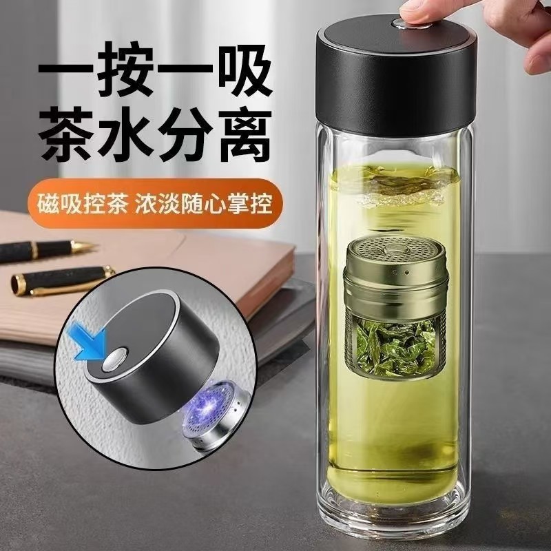 卸売り一ボタン磁気吸水カップ茶水分離グラス高ホウ素シリコン厚さ磁気吸引二重泡カップロゴ