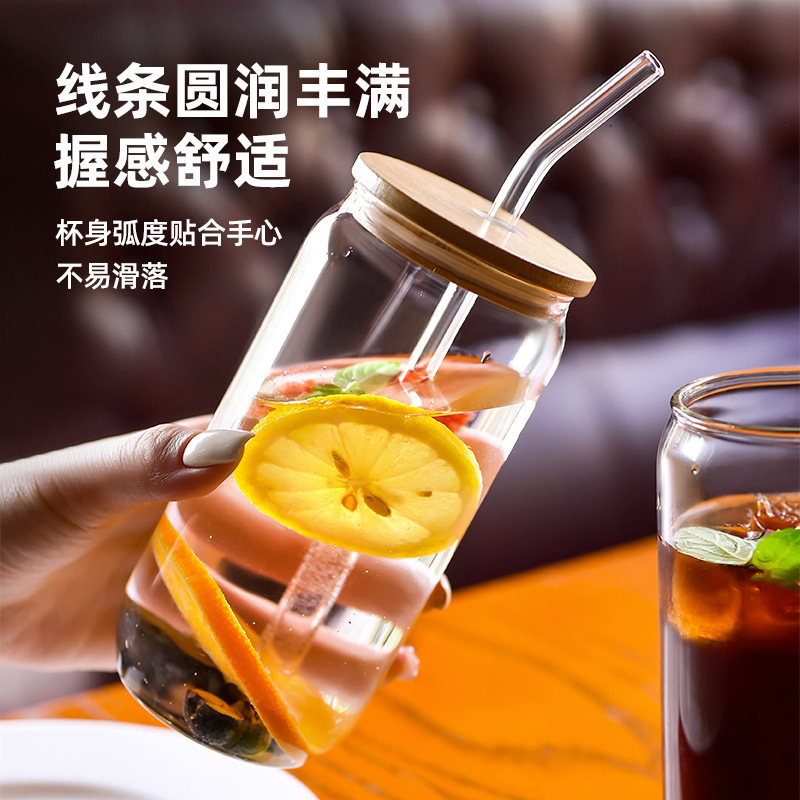 カスタム彫刻ストローカップ高ホウ素シリコンコーラカップ携帯蓋付きコーヒーカップ大カップ高颜値ガラスカップ