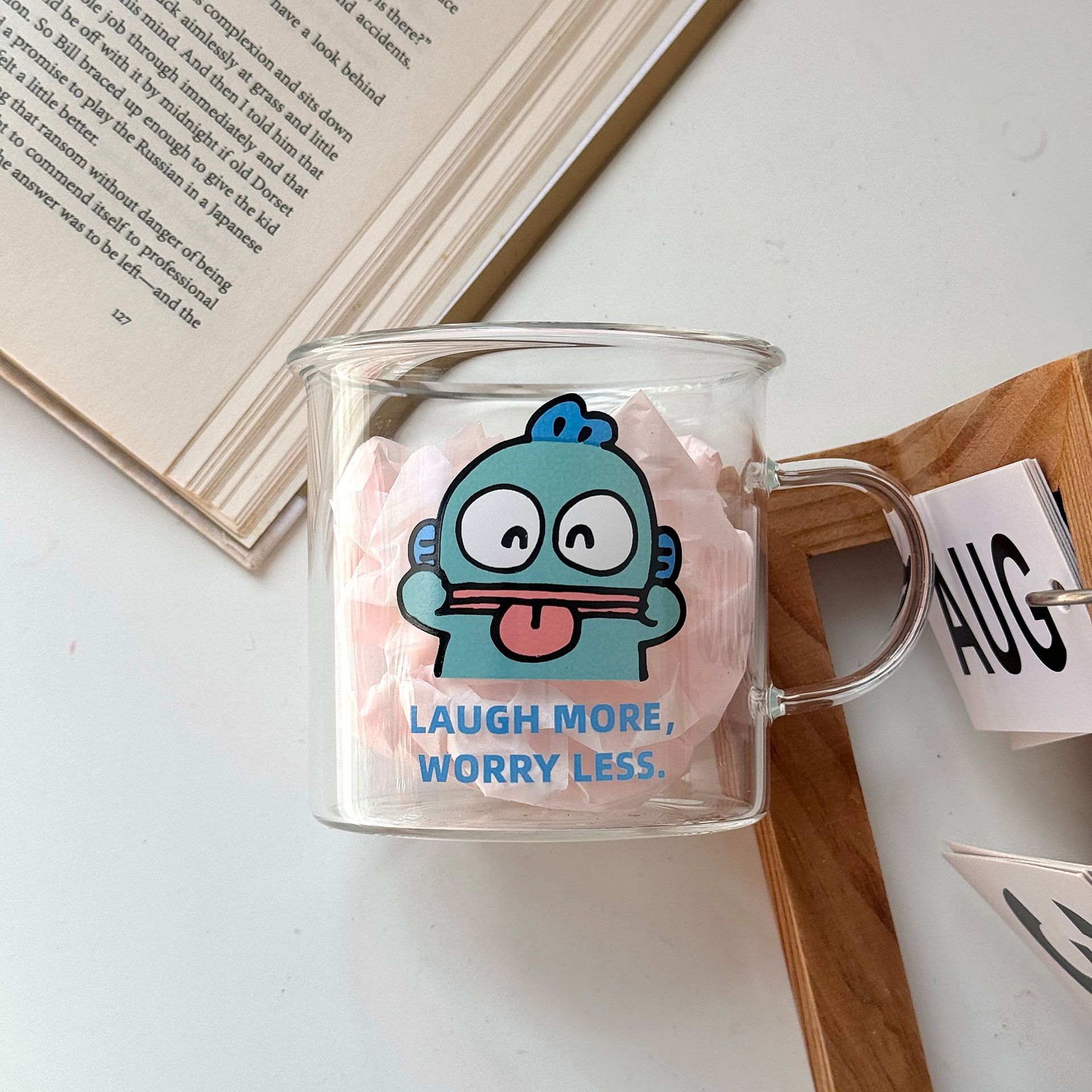Ins風が可愛いです。醜い魚が取っ手のグラスを持っています。