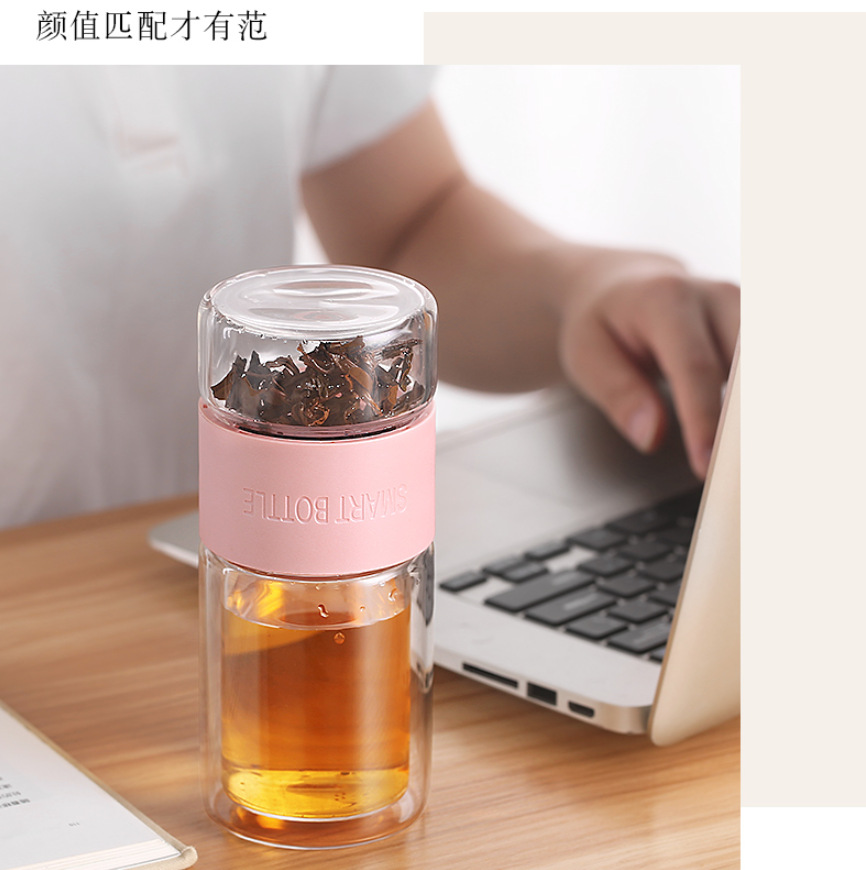 汎用高颜値二重茶水分離カップ高ホウ素シリコンカップ断熱耐高温卸売りギフトカップ