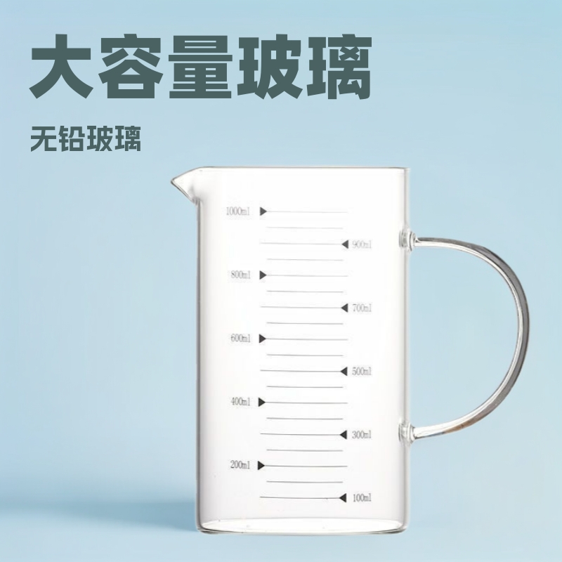 大容量ガラス計量カップスケール付きガラスカップ家庭用ベーキングカップ厚い透明鉛フリーガラスミルクカップ