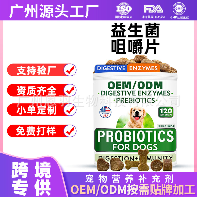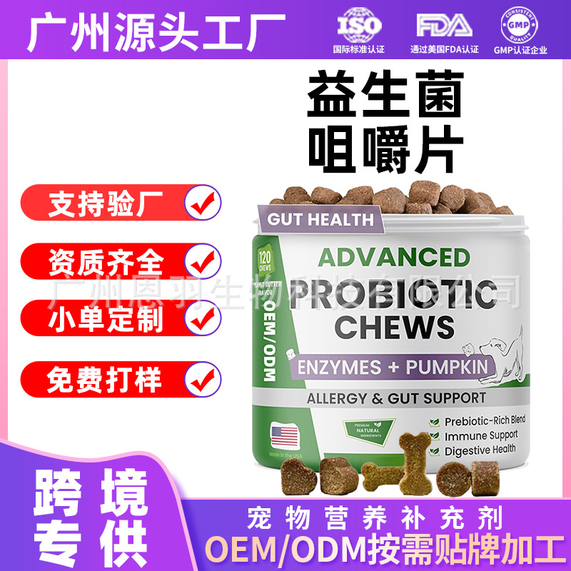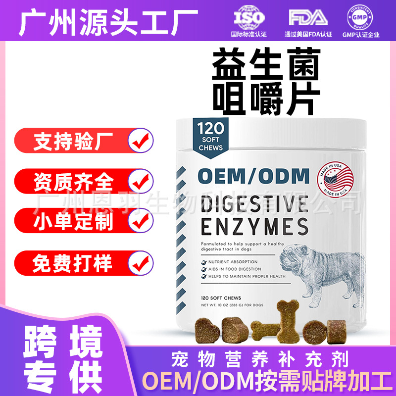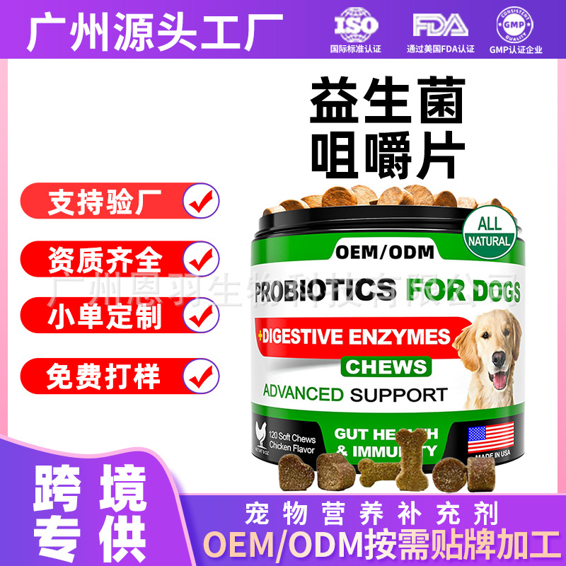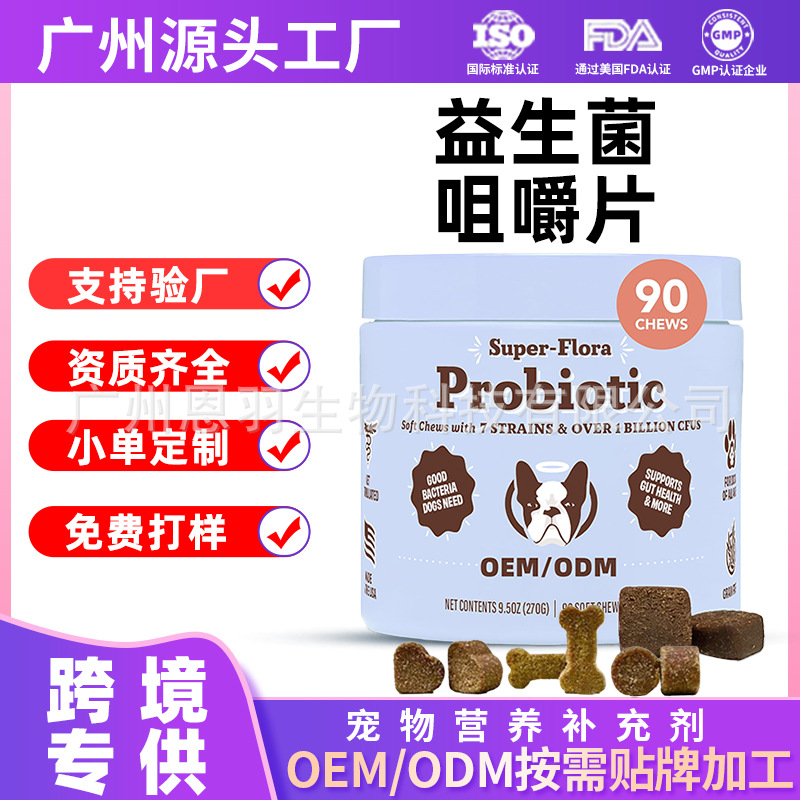 越境爆品ペット益生菌咀嚼片ペット保健品源工場代加工ブランドカスタマイズ