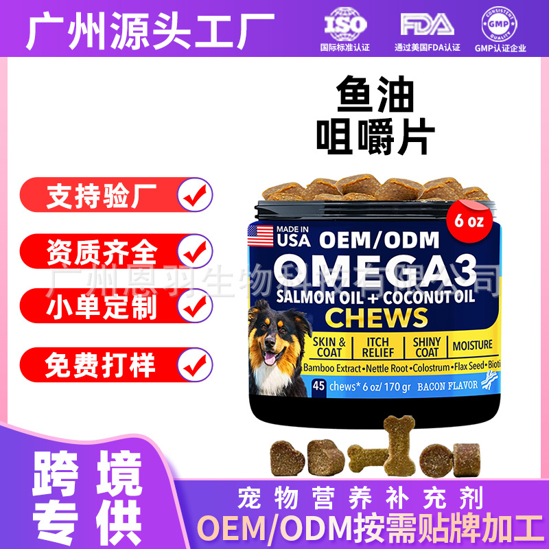 Amazonクロスボーダーベストセラーペットフィッシュオイルチュアブル錠ソフト顆粒ペットヘルスケア製品ソース工場カスタマイズOEM