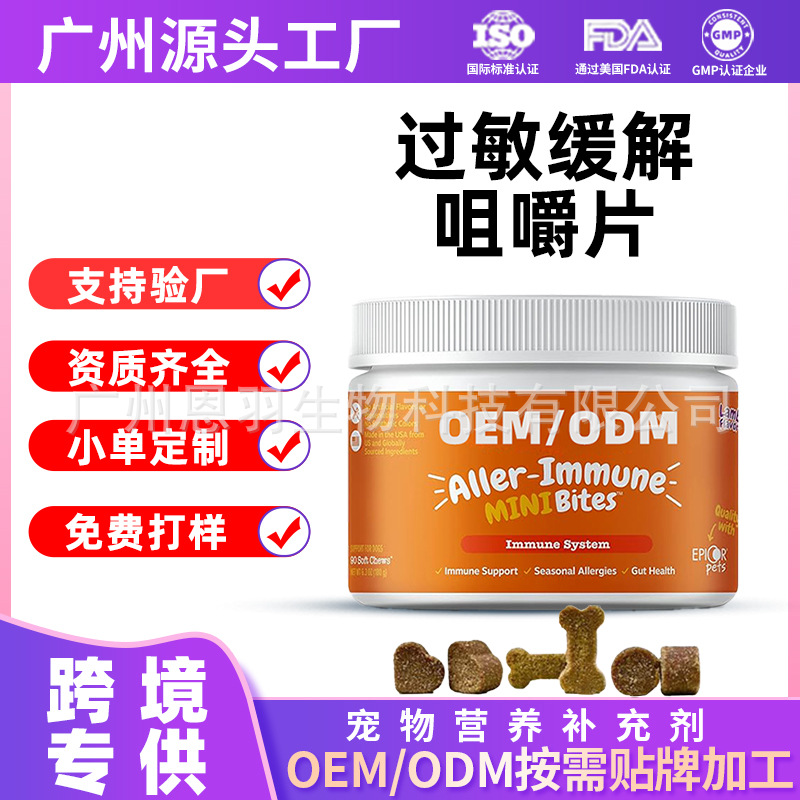 ペット抗アレルギーチュアブル錠の国境を越えた供給、ペットヘルスケア製品のソース工場加工、OEMカスタマイズ