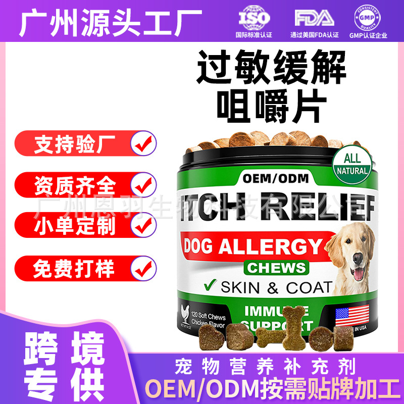 国境を越えたAmazonベストセラーペット抗アレルギーチュアブル錠犬アレルギー緩和サプリメントソースメーカーOEM加工