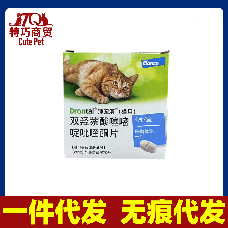 2027 年以降の日付、猫用 Bayer 4 カプセルは輸送可能で、体内駆虫に追跡できます。