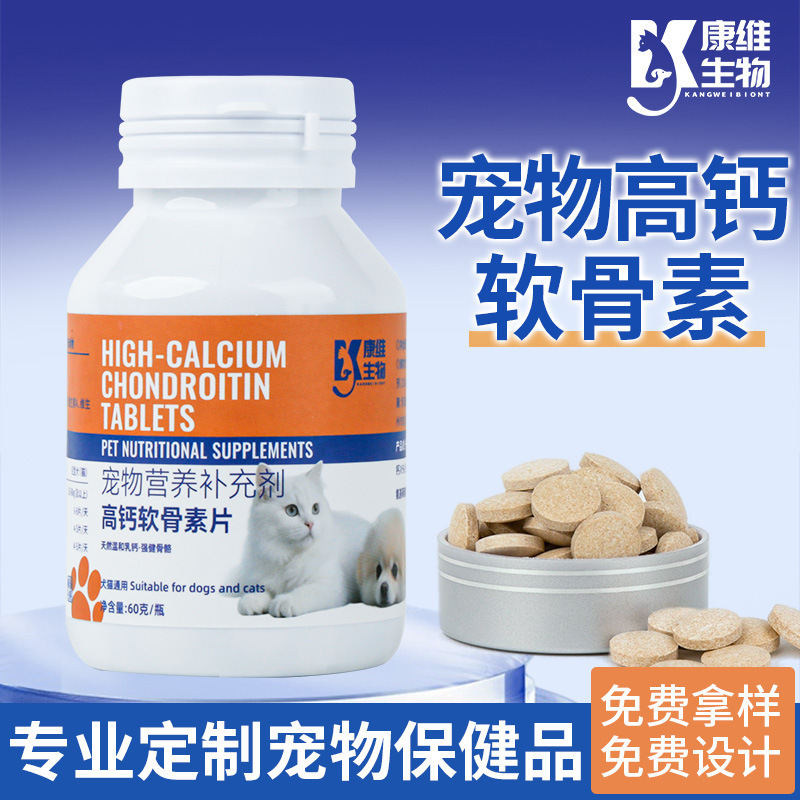 Kangwei Bio 高カルシウム コンドロイチン タブレットは、猫と犬用の一般的なカルシウム サプリメントで、軟骨に栄養を与えます。