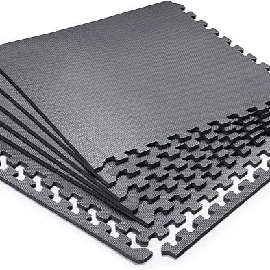 外国貿易供給 黒葉模様 ジム用衝撃吸収・防音フロアマット 組み立て式 厚手 汚れに強く拭き取り可能