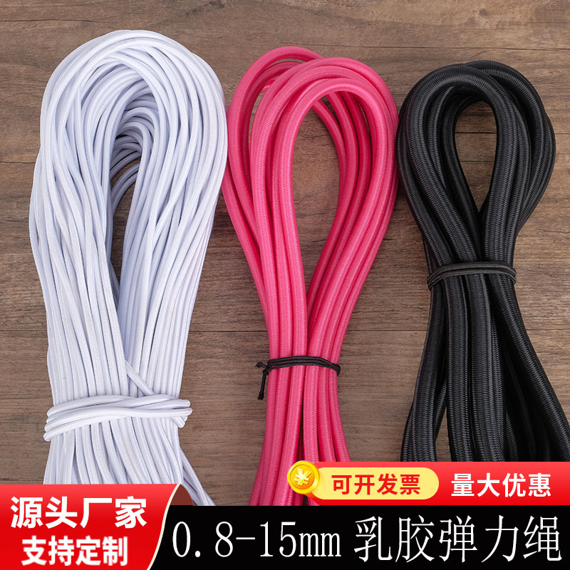 伸縮性のある丸型ゴム紐卸売 0.8mm-15mm 文玩用白黒カラー伸縮性ロープ 包芯ラテックスゴム紐
