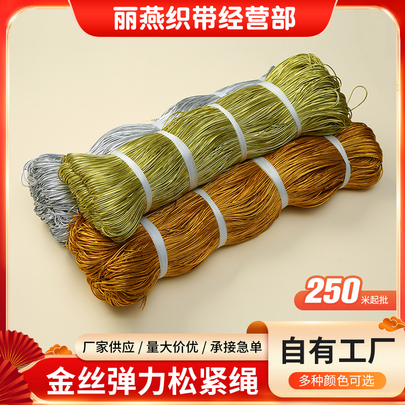 メーカー卸売りリボン金糸弾性バンド0.8-1.5MM金色銀色弾力ロープ服装補助材料吊り札ロープ