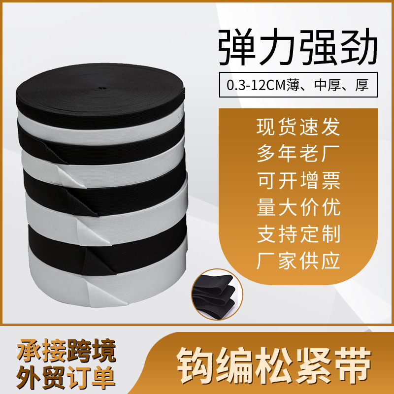 メーカー直供白黒フック弾性ベルトカラーズボン腰平幅ゴム筋平織り高弾フック編み弾性ベルト卸売り
